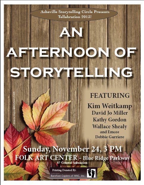 I am so excited for the chance to stretch the truth Sunday November 24th 4pm at the Folk Art Center on the Blue Ridge Parkway for Tellabration 2013